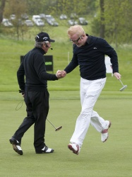 Ryder Cup winning captain Colin Montgomerie and European Tour star Oli Fisher hit tee shots on the 10th and 18th respectively, while nine-time Major winner Gary Player, victorious Solheim Cup captain Alison Nicholas, Scottish teenage-sensation Carly Booth and Evans handled everything on or around the greens.