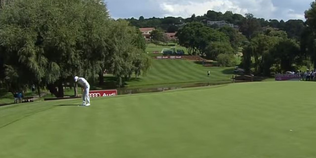At the next, a par five, he carved his drive way right but found a decent lie and was able to get his second shot just short of the green. He pitched stone dead to pick up the birdie that took him back to 13 under par, with playing partner Zander Lombard also scoring a birdie to progress to nine under. He was Schwartzel's nearest challenger.